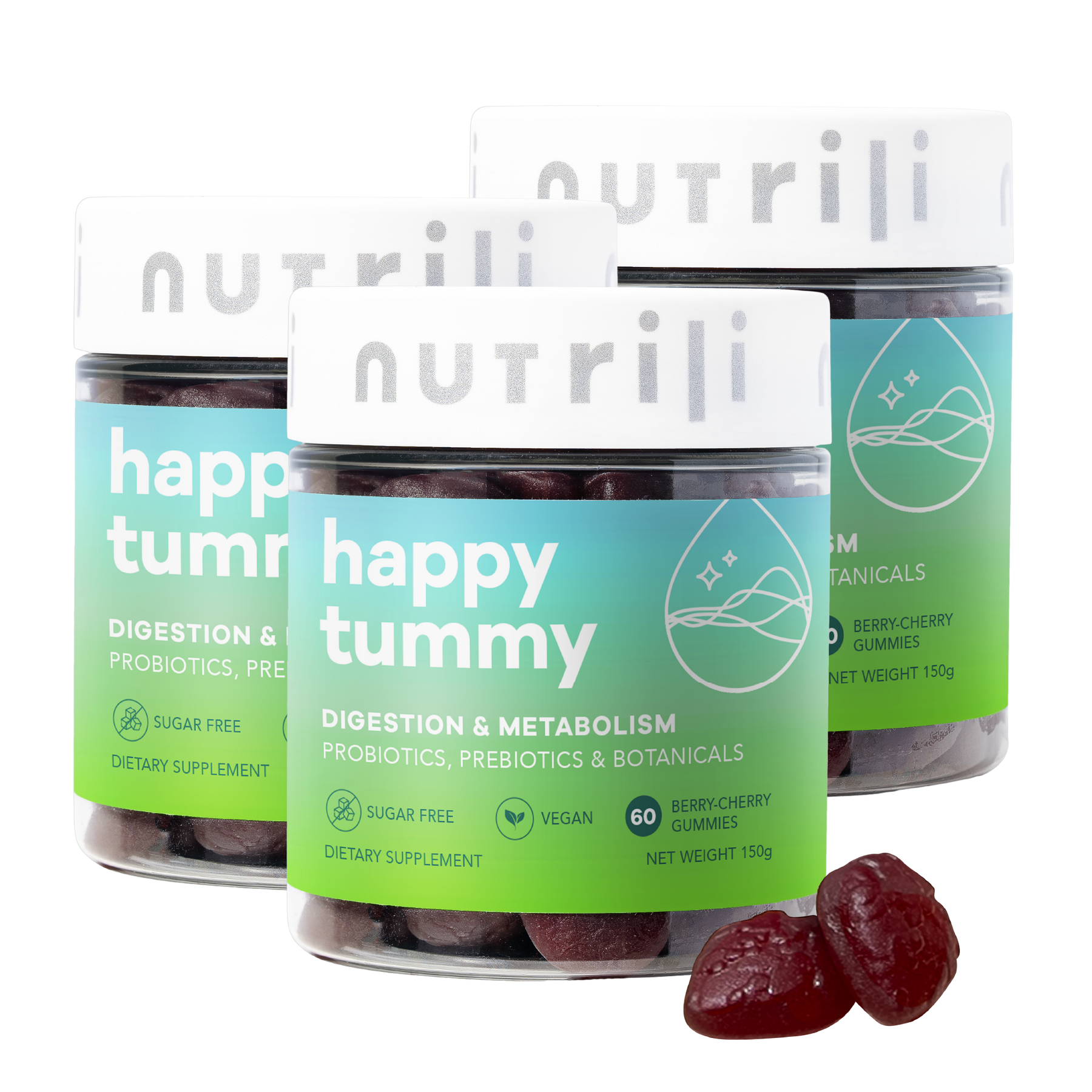نوصي بتناول Happy Tummy™ على معدة فارغة قبل حوالي ٣٠ دقيقة من وجبتك الأولى في اليوم.