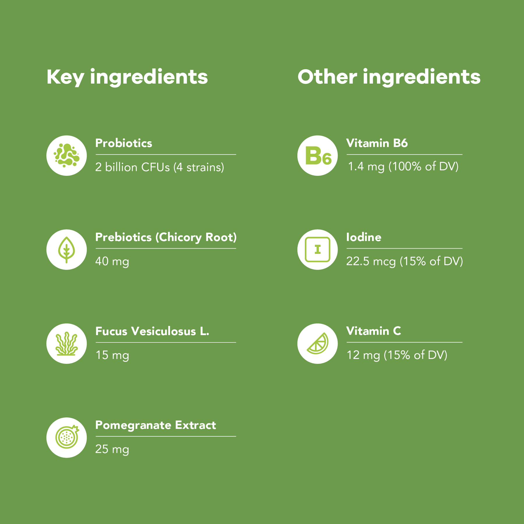 تعمل البروبيوتيك على تجديد وتغذية البكتيريا النافعة الموجودة بشكل طبيعي في أمعائك لتعزيز وظيفة الجهاز الهضمي وصحة الأمعاء بشكل عام. يتضمن ٤ أنواع أساسية من البروبيوتيك: لاكتوباسيلوس أسيدوفيلوس ولاكتوباسيلوس كازاي ولاكتوباسيلوس بلانتاروم والمكورات الحرارية.