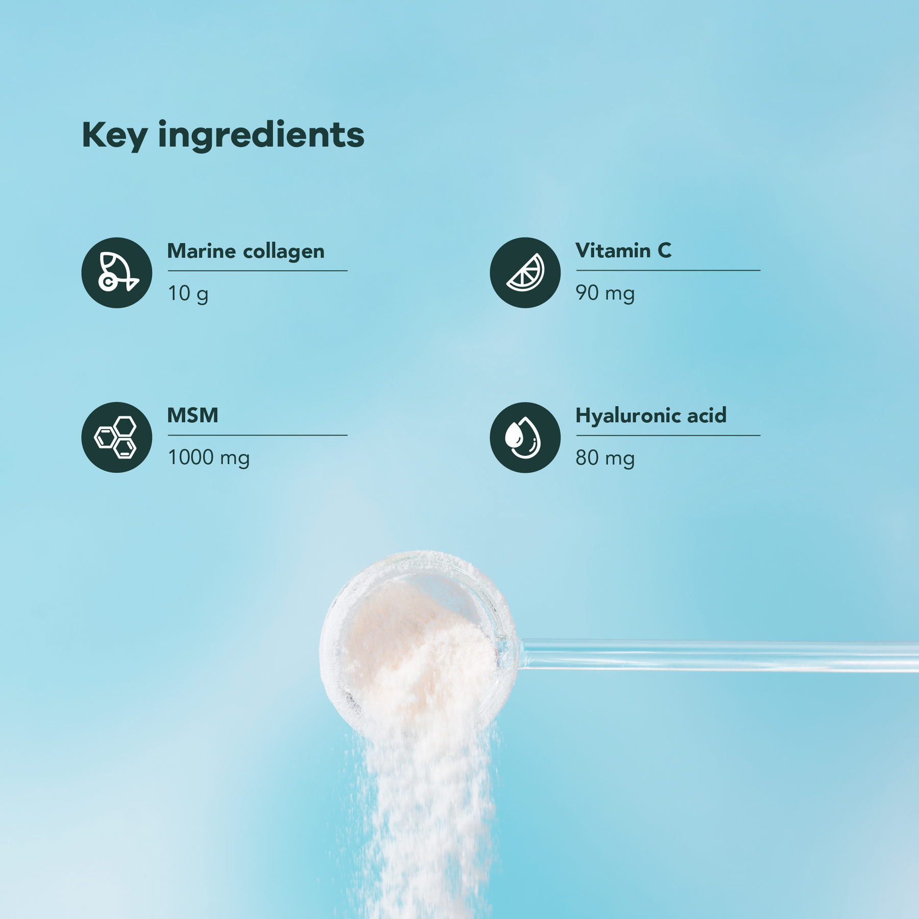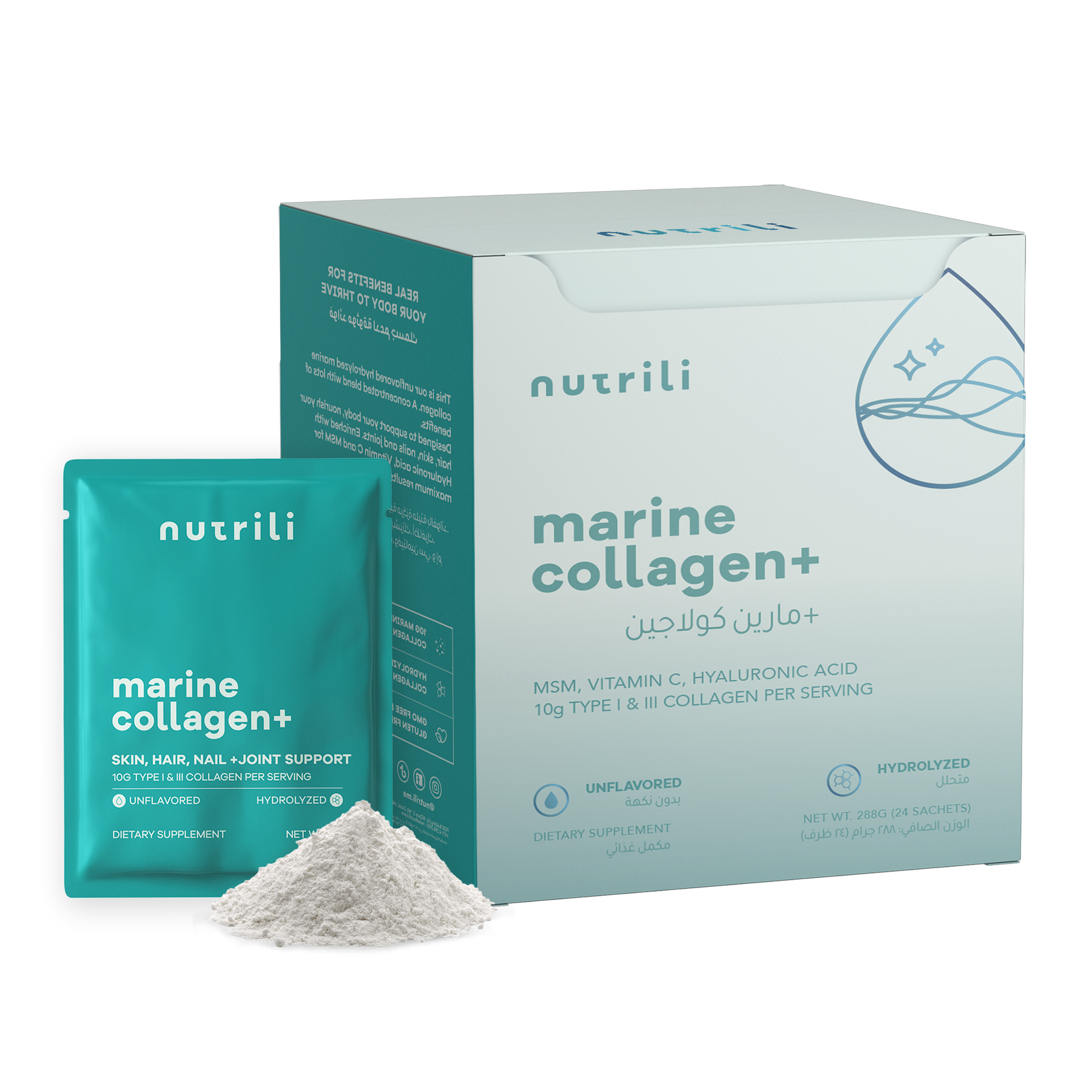 كولاجين بحري تم اصطياده من مصادر طبيعية يرطب ويشد البشرة، ويدعم صحة المفاصل والعضلات والأوتار والعظام